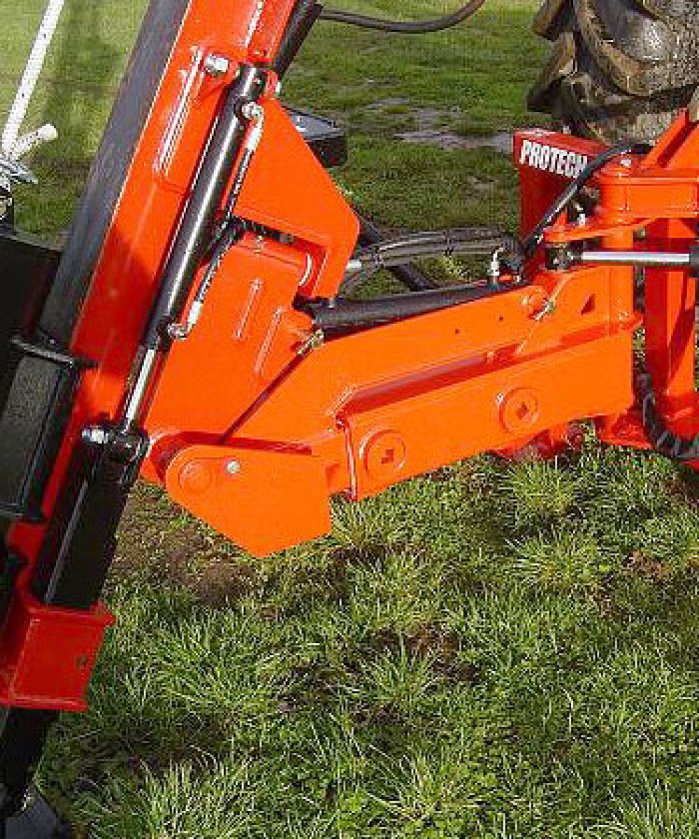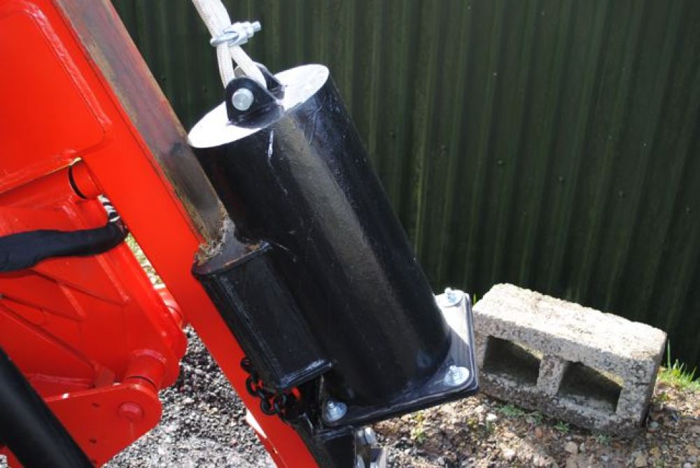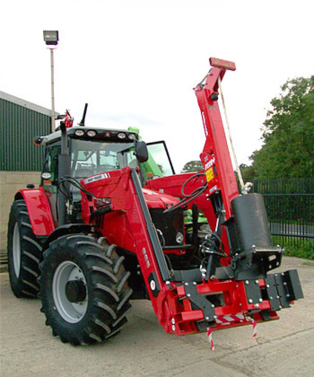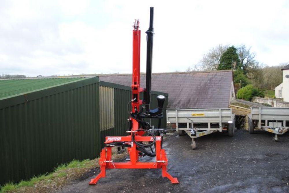 A fully hydraulic rear mounted post driver designed for the Farmer/Contractor, Equipped with a 210 kg hammer, 120 degree hydraulic slew with 250 mm telescopic extensions and mast tilts,