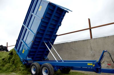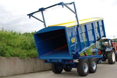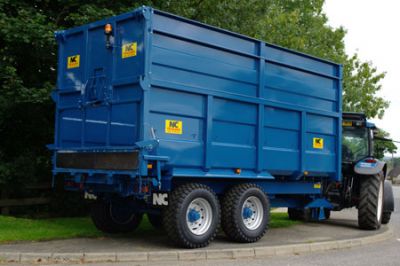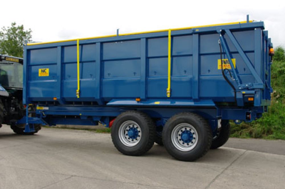 NC Engineering offer a selection of grain/silage trailers ranging from 10-18 Tons capacity. The monocoque body comes with a 100mm front to rear taper and tips to an angle of 50 degrees to ensure easy emptying. All trailers are fitted as standard with a sprung drawbar, tandem spring suspension, hydraulic brakes, handbrake, full RTA approved lights (including rear beacon) and front galvanised ladder. The 10 and 12 Ton models are fitted with a 40kph axle while 13-18 Ton models are fitted with high speed axles as standard. Standard wheel is the 385/65x22.5 super single. All trailers are fitted with an automatic top hinged tail door, complete with grain chute and manual securing bar