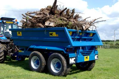 NC manufacture Dump Trailers ranging in carrying capacity from 8 tonnes to a massive 25 tonnes. Four models are available, the 300 series, which is our most popular range, featuring the ‘Magic’ tail-door. The 400 series featuring a ‘Magic’ tail-door but with the added benefit of a front door which folds down to provide ramps allowing machinery such as tracked diggers to be loaded into the trailer. This gives a more versatile trailer and allows one operator to transport 3 machines to a job saving both fuel and operator time. In addition there is the 400L series which feature a wider body with square sides and the E series which is a more conventional design of dump trailer with high sides and a hydraulic up and over tail door instead of a Magic door.